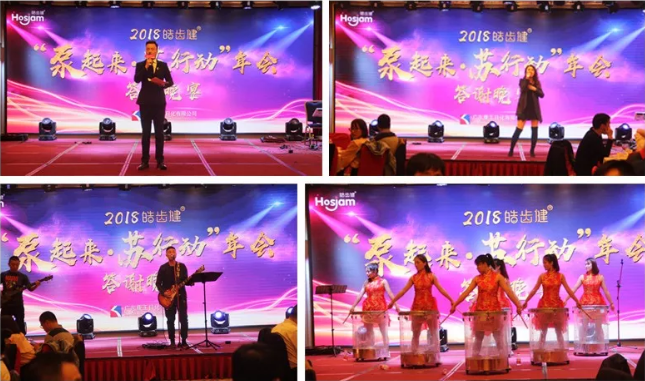 晚上19:00,為回饋廣大客戶一直以來(lái)對(duì)皓齒健的支持與陪伴,我們特地準(zhǔn)備了一場(chǎng)美輪美奐的視聽(tīng)大宴。流行歌曲,民族舞蹈,專(zhuān)業(yè)樂(lè)隊(duì)?wèi)?yīng)有盡有,現(xiàn)場(chǎng)氣氛一度被推向高潮!